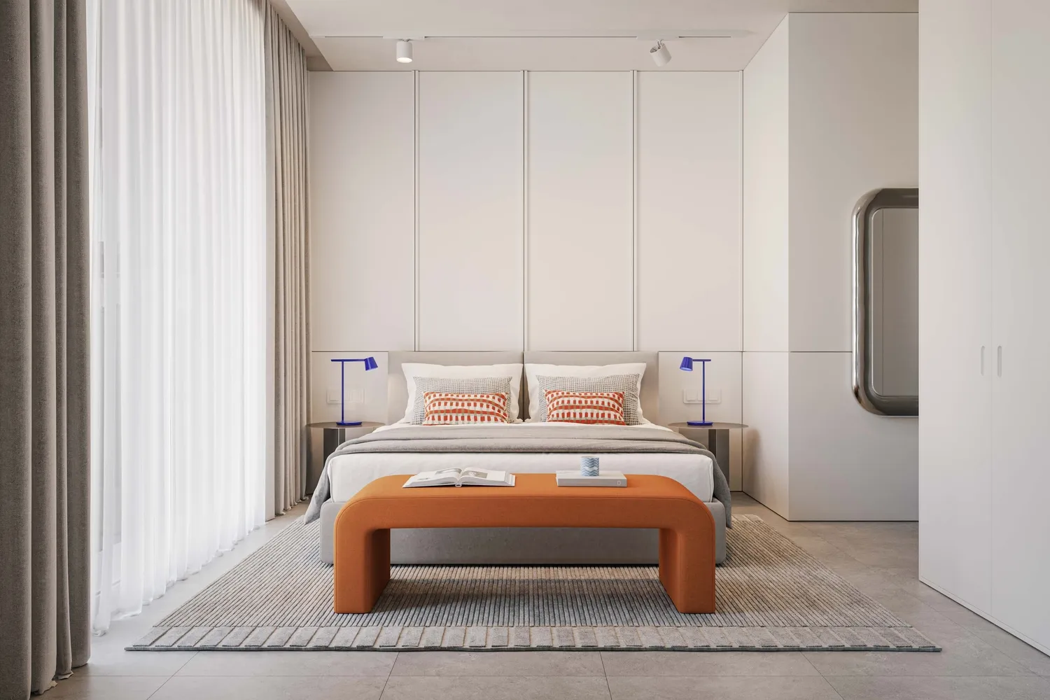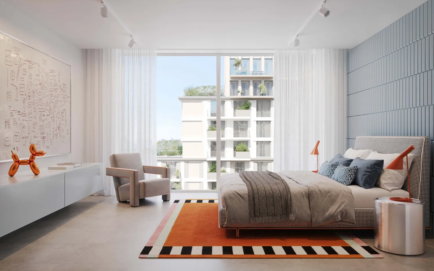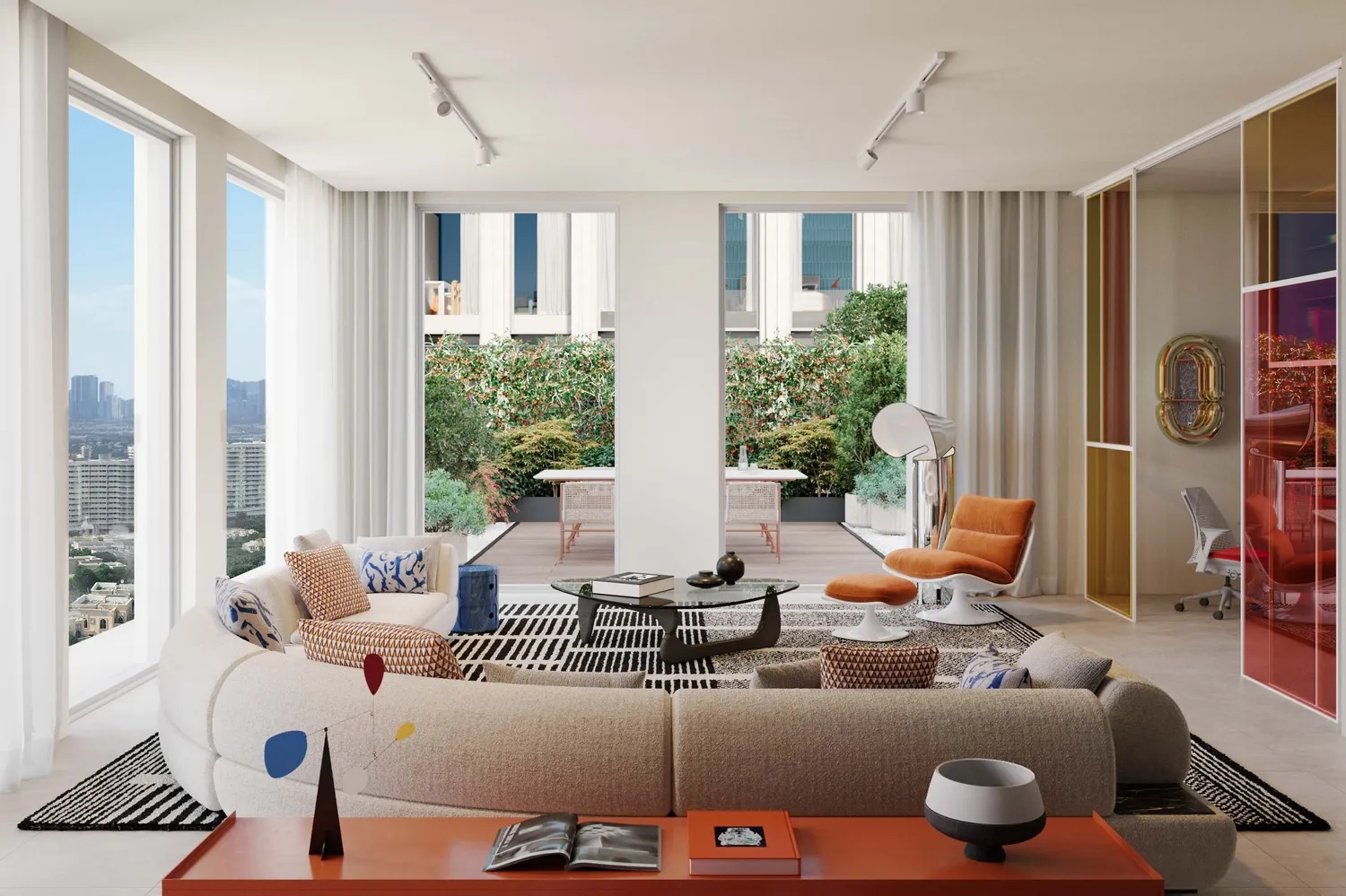 Interiors are finished with modern, high-quality materials and a clean, contemporary aesthetic. Apartments feature well-designed layouts with refined flooring, elegant wall finishes, and large windows that enhance natural light. Kitchens are fully fitted with quality cabinetry, durable countertops, and integrated appliances, while the residences are delivered semi-furnished, providing essential built-in elements that allow residents to personalize their living space.