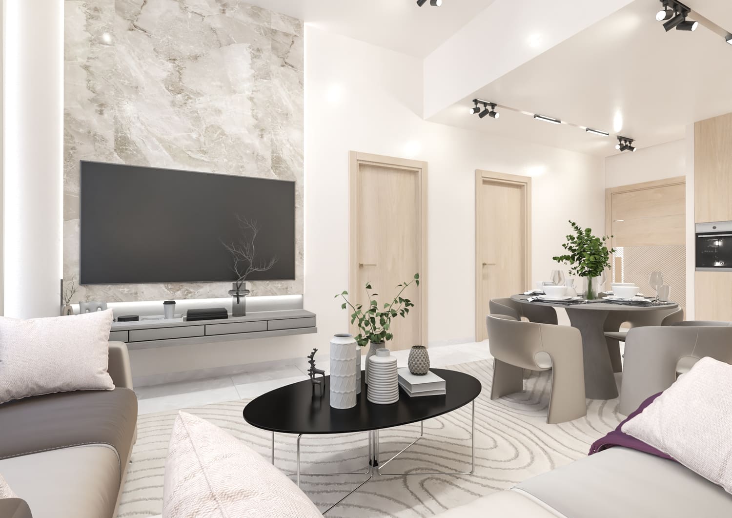 The interiors of Chapter 01 are delivered fully furnished, featuring a cohesive modern palette and high-quality contemporary materials. Living spaces incorporate smooth wall finishes, soft neutral flooring, built-in storage, and warm ambient lighting that enhances a sense of comfort. Kitchens are fully fitted with modern cabinetry, integrated appliances, and streamlined surfaces designed for functionality and visual continuity. Furniture selections include thoughtfully coordinated pieces across living, dining, and bedroom areas, creating a complete move-in-ready home with a polished, unified design.
