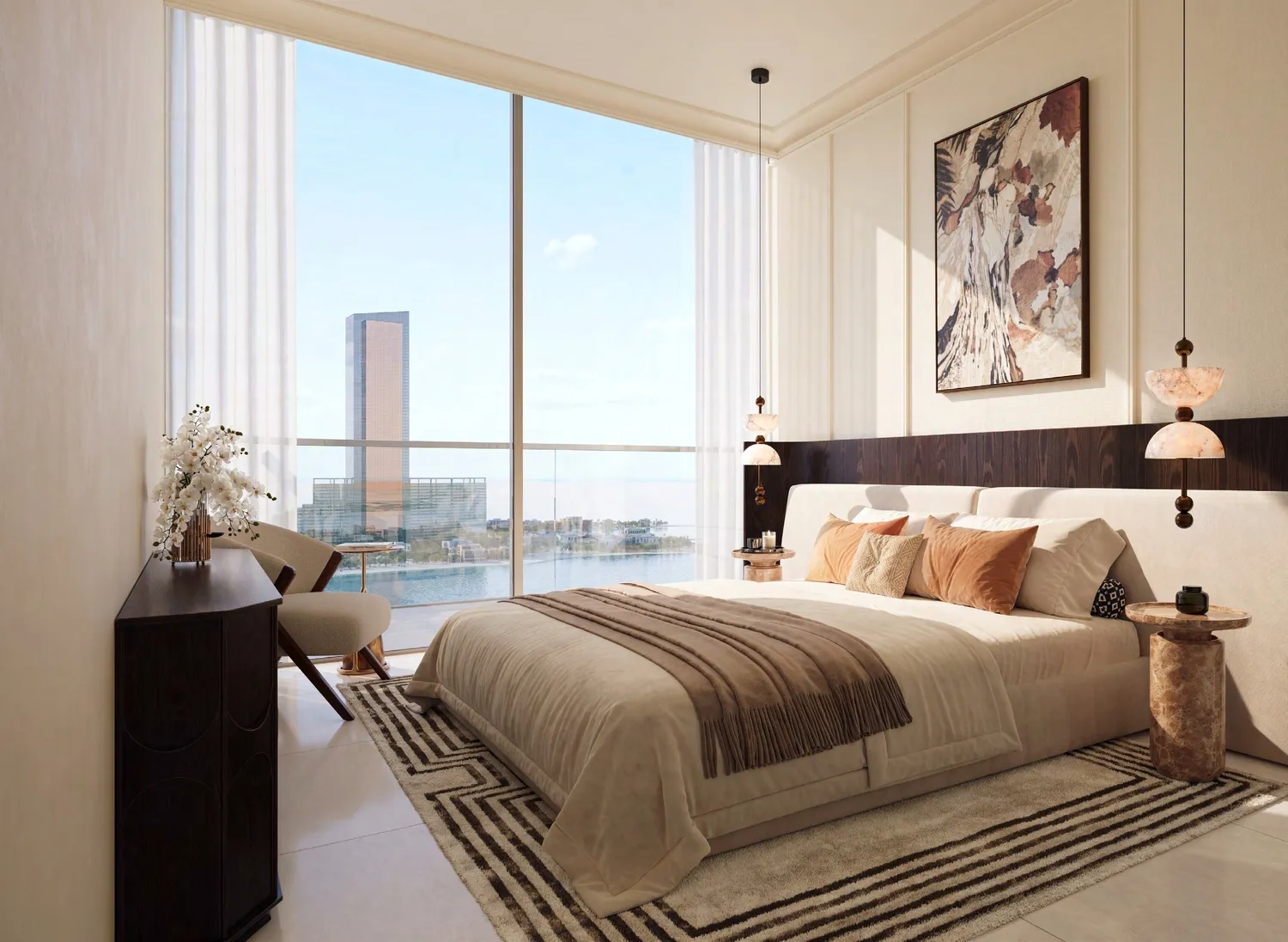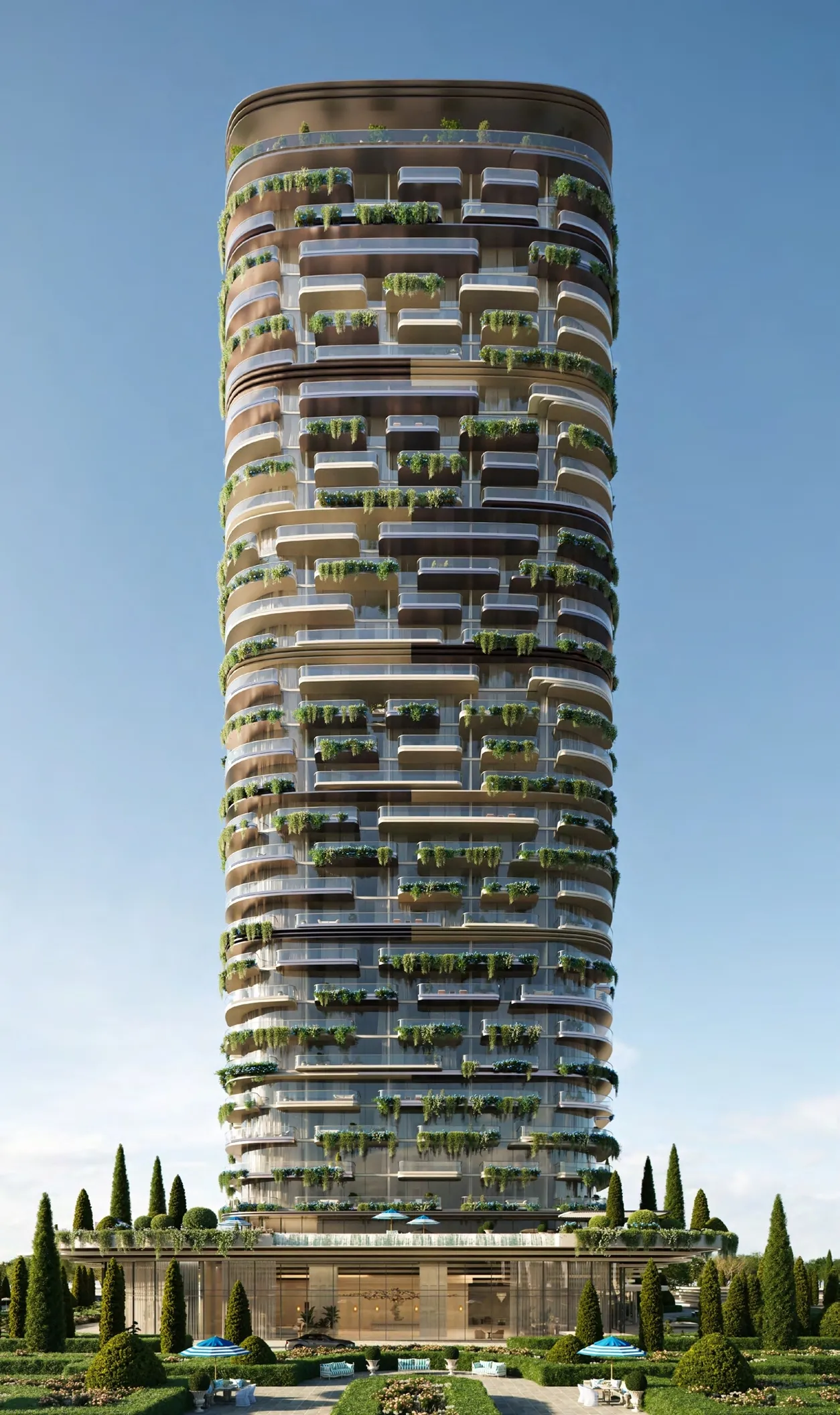Le Château is conceived as a modern expression of grandeur inspired by the French philosophy of l’art de vivre. Set within Evermore, BEYOND’s fully masterplanned destination in Ras Al Khaimah, the project forms part of a curated coastal environment where architecture, landscape and lifestyle are envisioned as a cohesive whole. Rising in a sculptural spiral form across 31 floors and comprising 257 residences, the tower is defined by its flowing geometry, alternating white and bronze balconies, and integrated greenery that softens the façade and strengthens the connection to sea and sky. Light-filled one- to three-bedroom residences are shaped by rhythm, proportion and seamless indoor-outdoor flow.