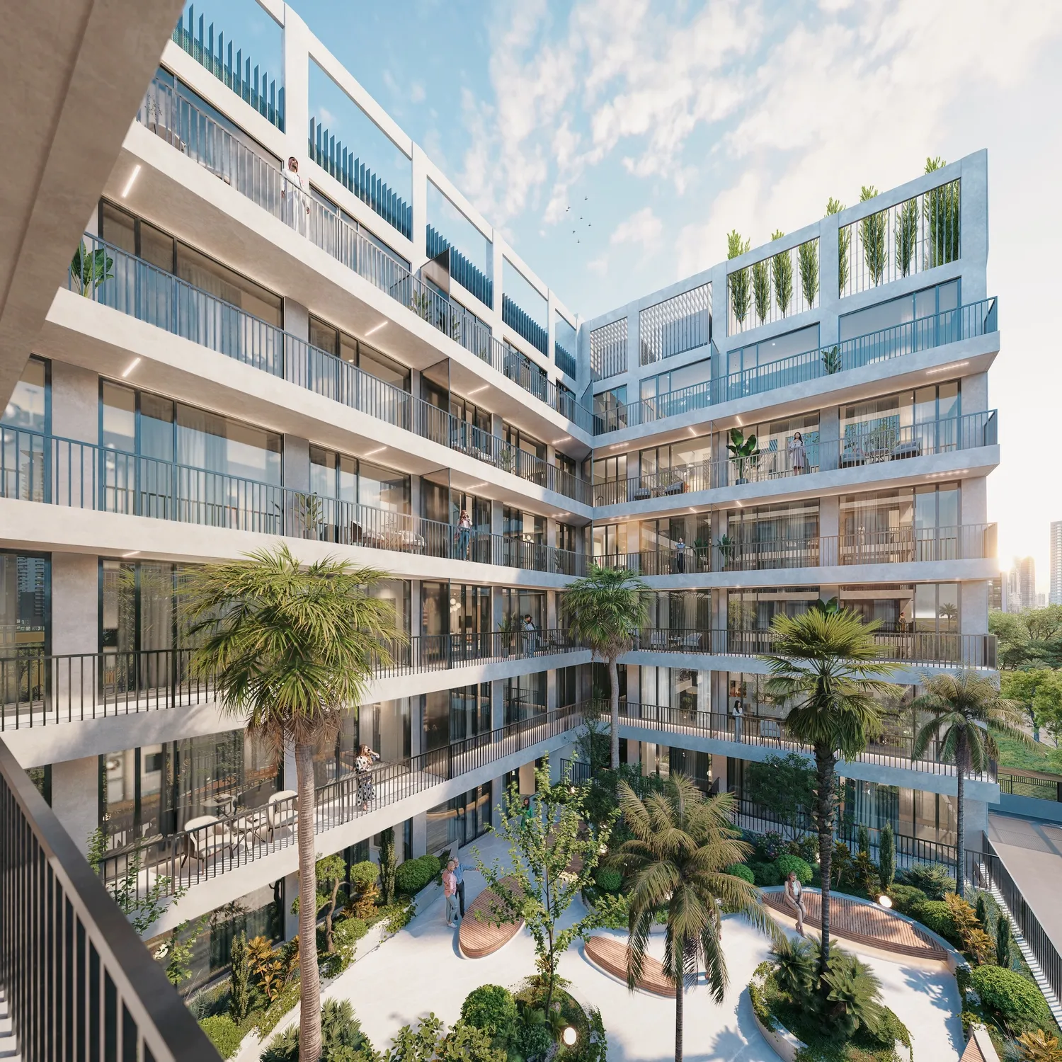 Amenities at The Collective create a complete wellness-oriented environment, featuring the Azure Infinity Pool, the energetic Pulse Lifestyle Hub, the social rooftop Gather zone, and the active Motion Wellness & Play area. Complemented by a gym, wellness studio, landscaped terraces, community gardens, children’s play areas, a rooftop bar, open-air cinema, multi-purpose court, relaxation spaces, and a concierge-serviced lobby, the development is elevated by interiors finished with high-quality materials and fully furnished residences curated by Bold Bespoke Design, including refined kitchens, contemporary bathrooms, and tailored storage solutions.
