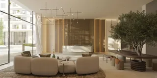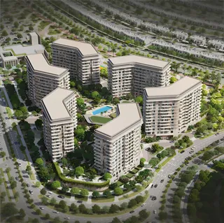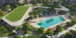 The complex features adult and children's pools, a fitness center with a wellness studio, a multi-purpose room, and an outdoor cinema. Additionally available are sensory pathways, relaxation zones, children's playgrounds, a pet park, and a co-working space for residents.